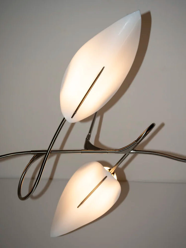 Ceiling mounted fixtures include a metal mounting stem up to 35 inch / 890 mm and canopy in matching metal finish which houses a low voltage transformer / dimming module for Local installation.