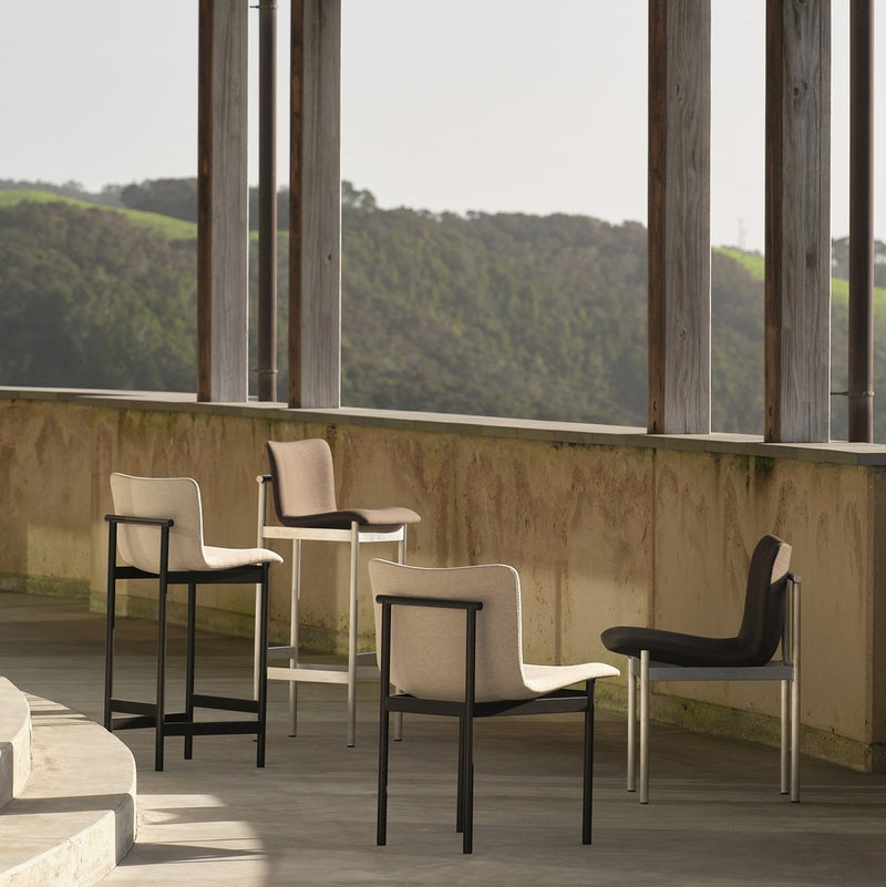 Cadre Stool continues the language of the Cadre Chair with is slender, structural, and softly suspended elements. A refined aluminium frame, offered in Brushed Aluminium or Dark Bronze Powdercoat, supports an upholstered seat that floats within its geometry.The curved shell is separated from the frame by a deliberate gap, enhancing the stool’s sculptural clarity. Hidden fixings preserve the integrity of the form, while a precise rhythm emerges when stools are placed in sequence, the backs aligning in quiet cohesion. Equally suited to kitchens, bars, or informal spaces, Cadre Stool is a study in balance, built to last, and designed to sit lightly in its surroundings.Contact us for custom colors.