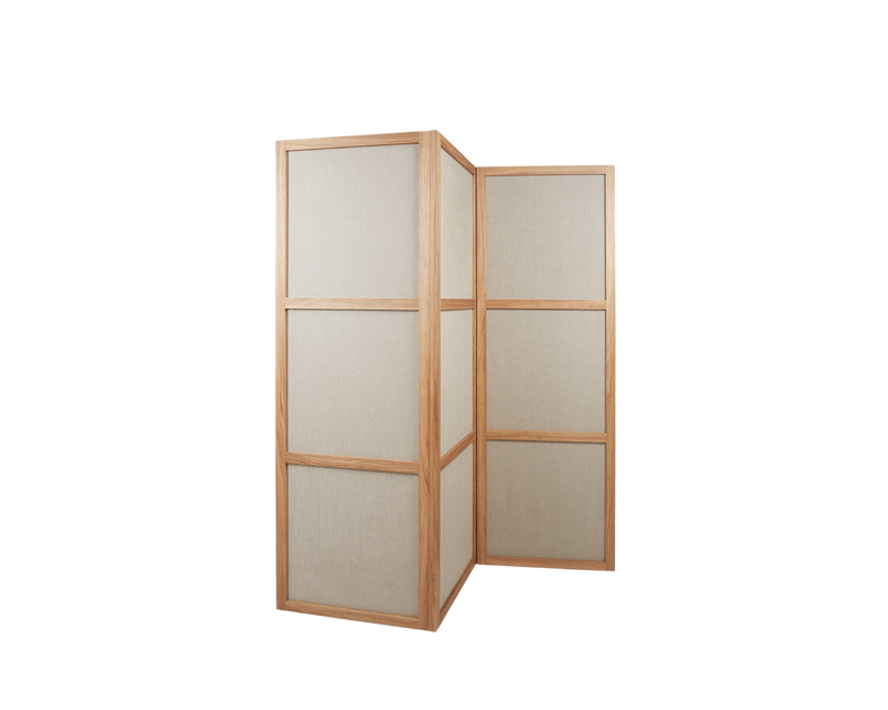 The Frame Room Divider is designed to be a discrete and subtle way of separating any room. Whether you require some privacy, a place for guests to relax, or want to add a spatial element to your home, the Room Divider maintains the same experience as the room and allows for translucency. The free-standing pieces are composed of natural oak and canvas and are held together with strong magnets to form a simple aesthetic and for practicality in moving.