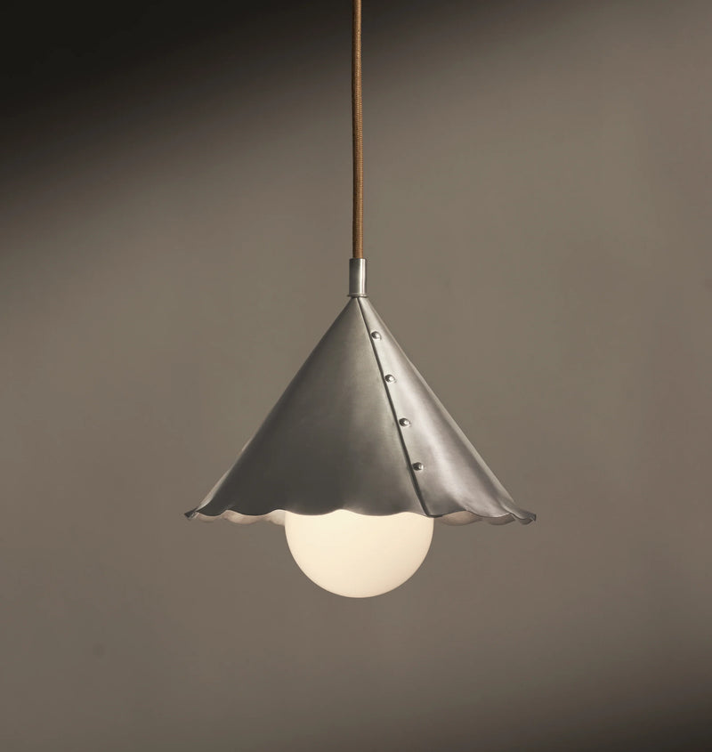 Petal is inspired by the graceful forms of the Ashoka tree. Each piece is hand-shaped and riveted together; the artisan’s subtle tap, tap echoing the sound of falling leaves. The resulting form has the softness of the artisan's touch. Petal is available in soft silver, unlacquered brass, and burnished bronze.