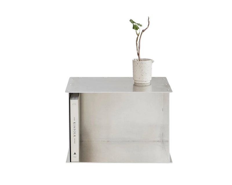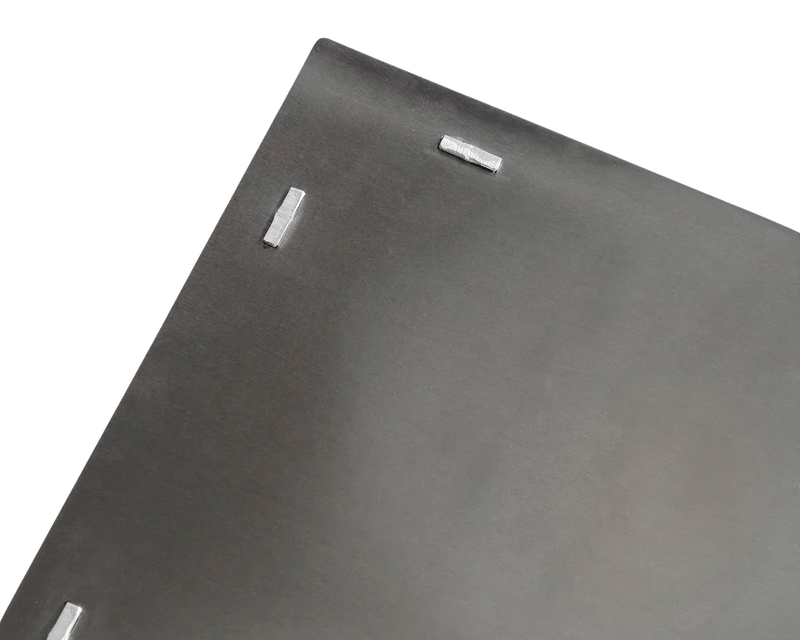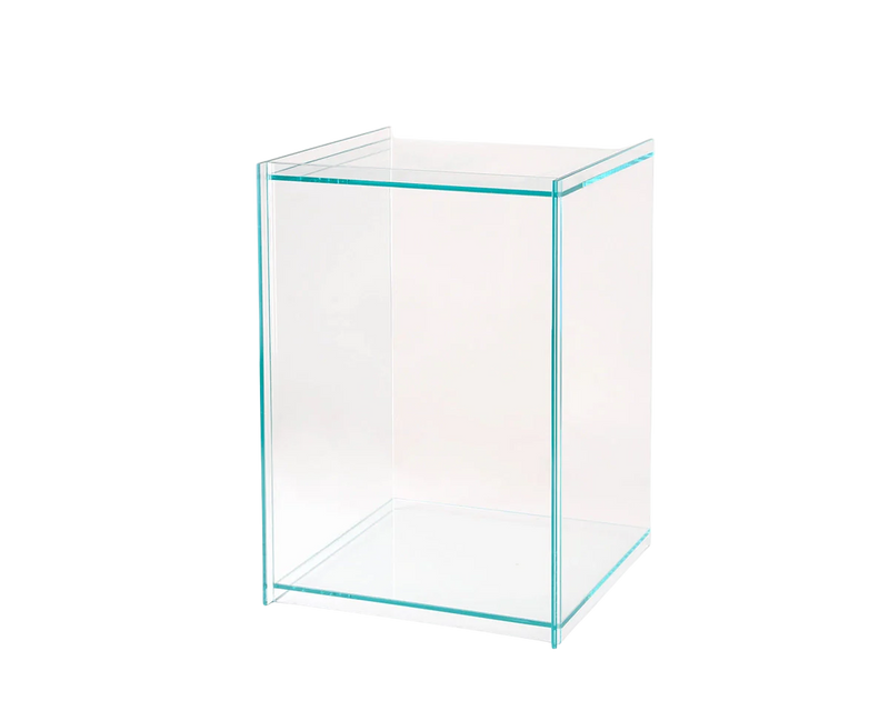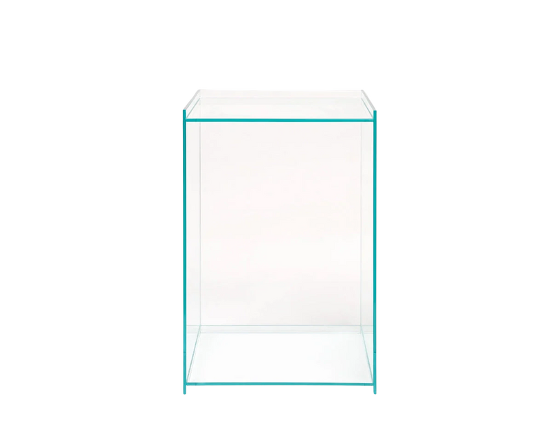 Untreated raw aluminium / Tempered glass; a type of safety glass processed by controlled thermal or chemical treatments to increase its strength compared with normal glass. Parts are connected through UV-bonding.