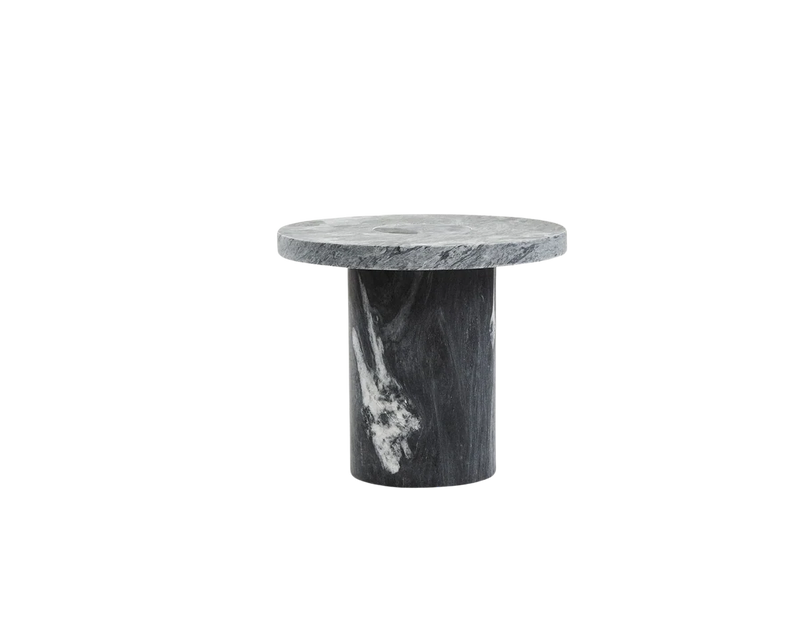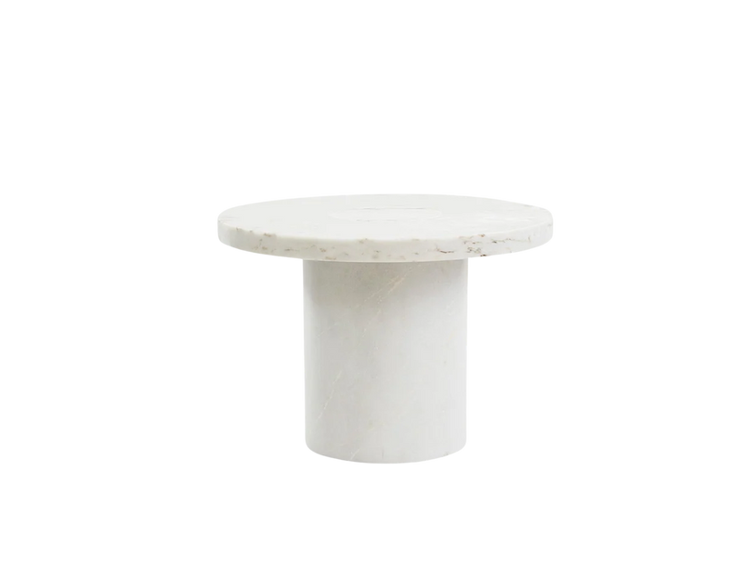 Suitable as a coffee table or side table, the Sintra Table Marble Edition features a smooth marble top with a rounded matching base. Its polished surface showcases the stone's intricate veins and natural beauty—a sculptural furniture piece with expressive attributes and functionality.