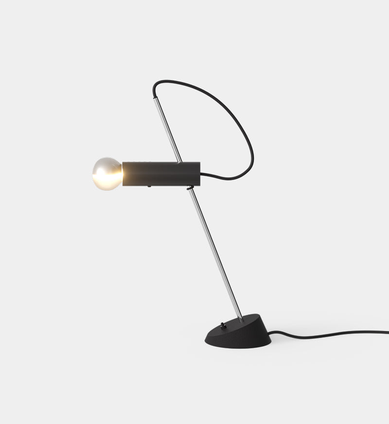 Designed in 1956, the Model 566 embodies Gino Sarfatti’s reductive process, resulting in a balanced elemental form. The luminaire stands poised, with implied forward motion, lightening the contrasting body tube which holds the characteristic Cornalux bulb. The body tube is cleverly supported by a simple rubber ring that provides the perfect amount of friction for infinite adjustability. The base, originally made of cast-iron, is now made from an alloy of aluminium, magnesium, and copper, which provides better resistance to corrosion, produces no air pollution during production, and is recyclable. Punctuating the design, a familiar push-button on/off switch is incorporated in the base, providing a satisfying click.