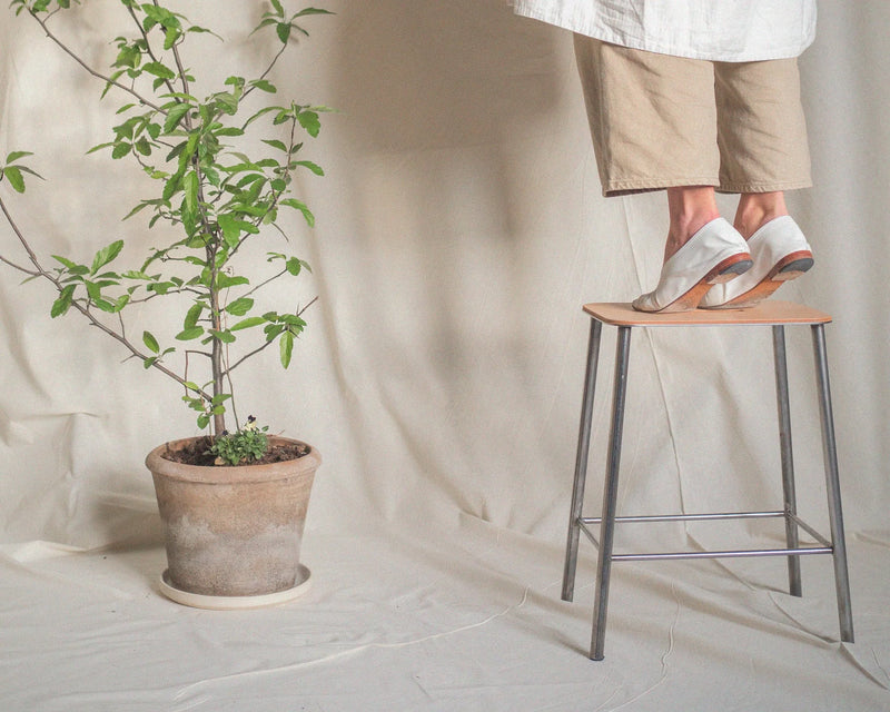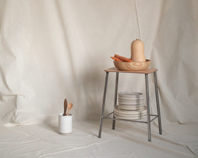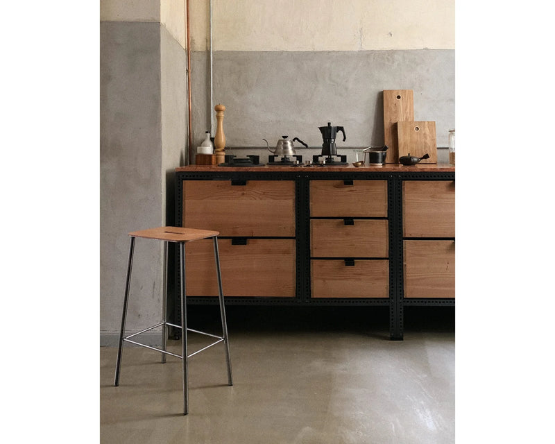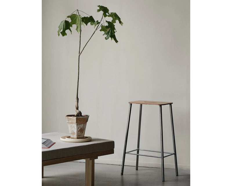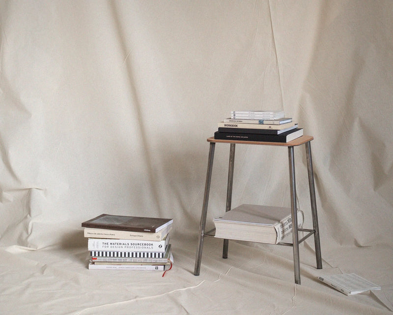 MaterialsPowder-coated steel frame | Oiled oak or leather top.