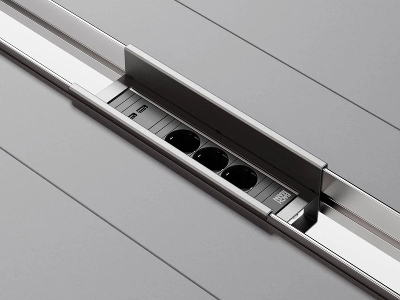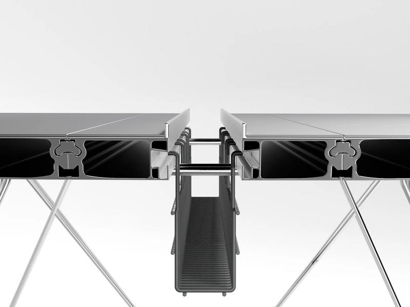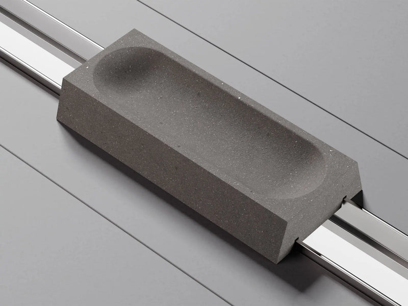 Top: Extruded, scotch polished aluminium with an anodized silver finish