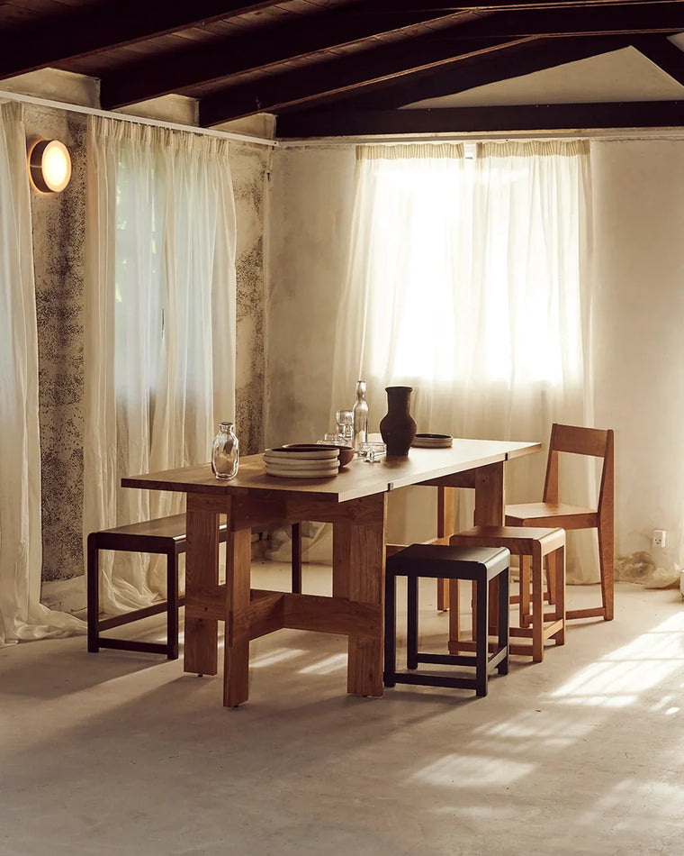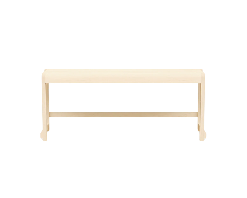 Bench 01 is defined by a straightforward silhouette inspired by seating commonly found in Nordic auditoriums and churches since the 1800s, and the simplicity of the evolution of Danish design. The bench fits two people and is made from Baltic birch. This sturdy item comes in various finishes suiting a wide range of environments, and its height is suitable for most standard dining tables.