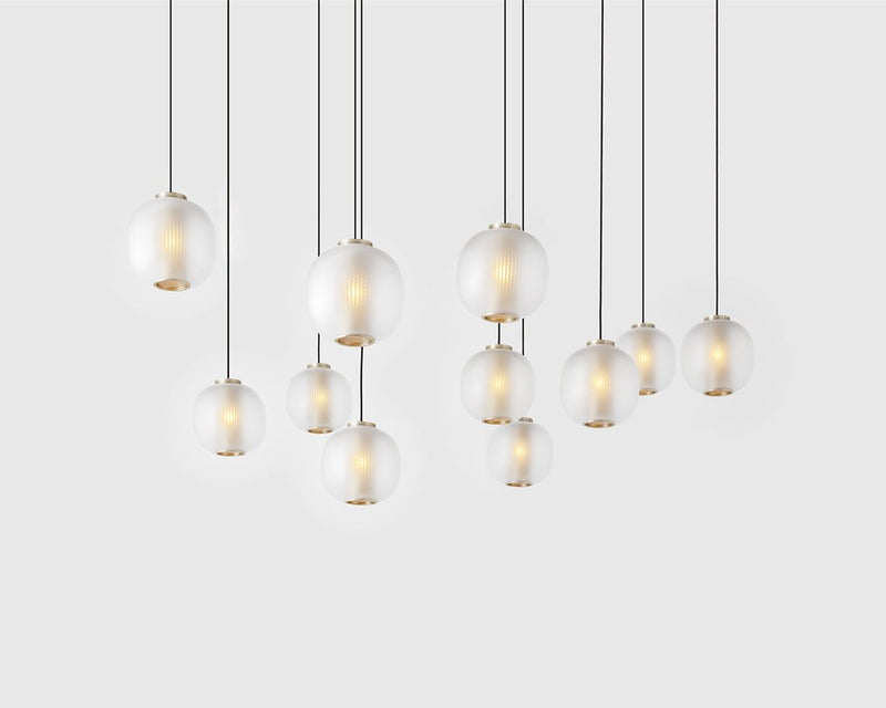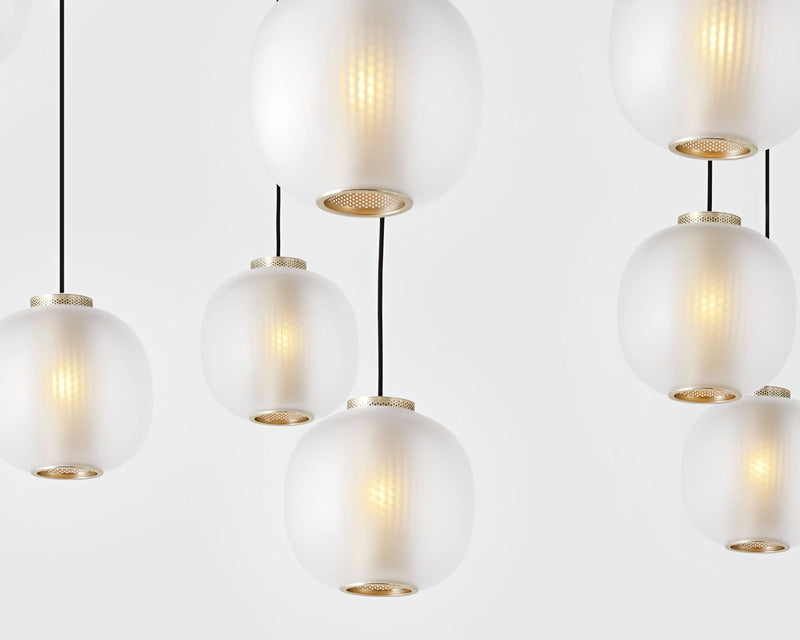 The Bloom Pendant’s super-elliptical form is inspired by the gentle dynamic flow of paper lanterns. Transparency and light create a glorious lit effect through the use of two contrasting materials – a finely perforated mesh core and frosted blown glass – which combine to project a soft-focus texture onto the inside of the shade.At the same time, an unobstructed pool of light is projected downwards onto objects below. Bloom’s distinct character is evident both in its on and off state, creating a versatile pendant light.